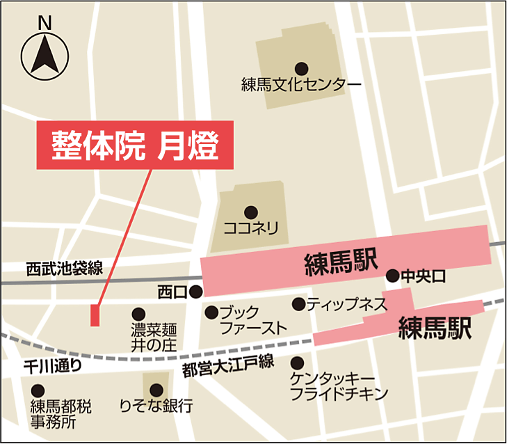 整体院月燈は「練馬駅」が最寄りになります。