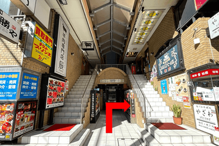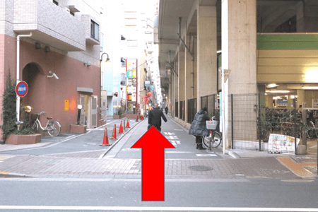 2プリンター屋さんの隣の出口を出たら、右方向へまっすぐと進んでください。