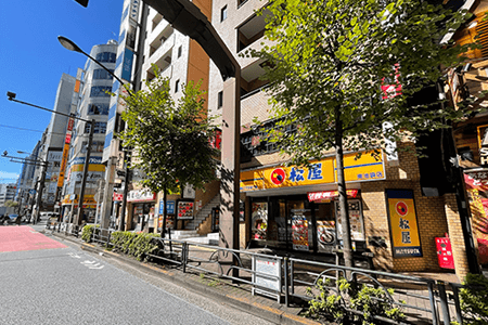 4下に回転寿司・松屋のあるビルが当院です。